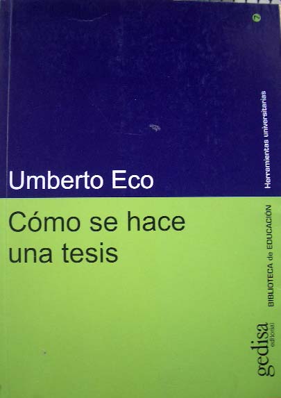 | Como se hace una tesisUmberto EcoAnte la actual situación de masificación de nuestras universidades, Umberto Eco destina este libro sobre todo a los estudiantes con pocos recursos y apoyos, a los que viven lejos de los grandes cen... [+ info]De venta en: www.agapea.com/Como-se-hace-una-tesis-n75984i.htmFecha de consulta: 06/11/2005 |