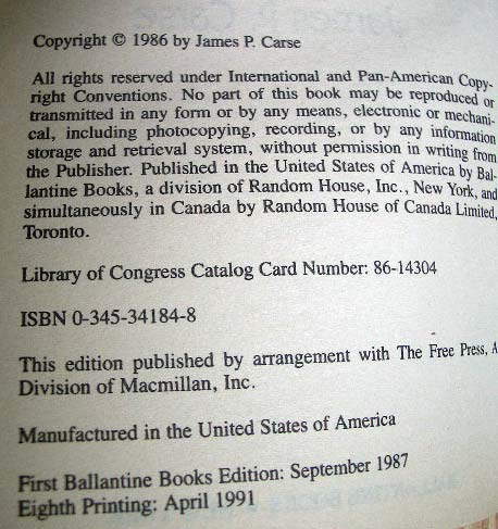 Autor: James P. CarseThere are at least two kinds of games: finite and infinite.