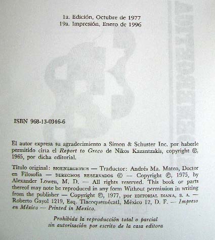 Escrito desde una perspectiva positiva y liberadora del agotamiento físico, síquico y emocional que agobia al hombre moderno, este libro tiene como meta principal incrementar la alegría y la satisfacción en la vida cotidiana del lector. Con un enfoque revolucionario de la relación mente cuerpo que ha despertado gran entusiasmo en diversas partes del mundo, la Bioenergética ayuda a calmar la ansiedad mental y, con ello, a que el hombre tenso e inhibido sea libre; a que el temeroso adquiera confianza en sí mismo ; a que el excesivamente agresivo suavice sus modales y a que el reprimido goce de horizontes insospechados. Al aplicar a su vida diaria el sencillo lema de la Bioenergética, usted es su cuerpo, verá cómo su organismo emite una energía propia que, al canalizarse en la forma adecuada, influye positivamente en los trastornos energéticos del cuerpo que afectan tanto a la salud mental como a la física. Una de las tareas primordiales del hombre y la mujer modernos es saber liberar sentimientos y fuerzas que provocan tensiones musculares y agotamientos indeseables. Por eso, la Bioenergética, una de las formas de sicoterapia más aceptadas hoy en día, es un medio ideal para tener una vida más plena y feliz.
