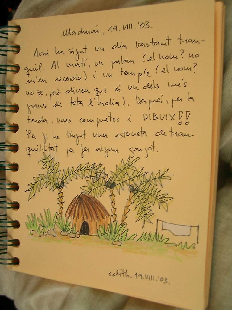 Texto y dibujo de Edith Lloret, viaje a la India Agosto 2003