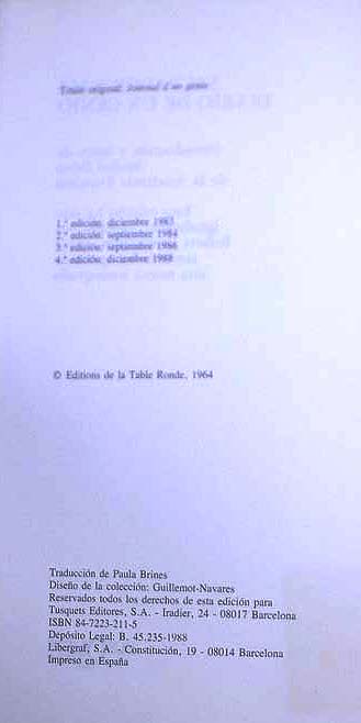 Autor: Salvador DalíAutorretrato de Dalí al desnudo, mirilla abierta al Dalí cotidiano, DIARIO DE UN GENIO revela todo lo que uno desea saber de la intimidad de este artista. En el diario (que cubre los años 1952-1964), DALÍ desvela sus descubrimientos pictóricos y las grandes cuestiones que agitan su pensamiento, indispensables para acercarse a sus obras de arte, sin dejar por ello de rememorar otros episodios, como su precoz atracción por Nietsche, su polémica ruptura con el grupo surrealista, o la manera en que «mató» a la autoridad paterna, encarnada en su caso por su padre y por Picasso. Jugando con las palabras, tiñéndolas de un irresistible humor, DALÍ se mueve con soltura entre la alta sociedad neoyorkina y los pescadores de Port Lligat, entre la improvisación creativa y la estudiada pincelada, entre el materialismo más crudo y los delirios más espirituales. Ofrece así a los lectores un auténtico retrato de su época, de sus contemporáneos (unas veces respetuoso, otras demoledor) y de su propia vida: una vida convertida en obra de arte, en continuo espectáculo y en incesante invención.Im�genes: