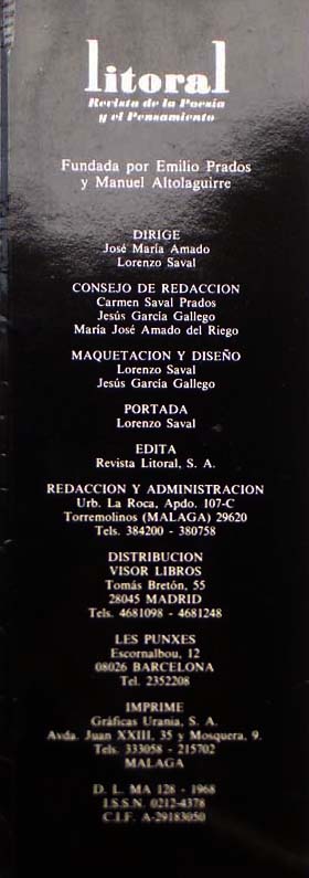 Autor: José María Amado Lorenzo Saval | Litoral. Málaga. 1987. 528 pp. Rustica editorial ilustrada con solapas. Surrealismo. Literatura. Arte. El Surrealismo es esencialmente revolucionario y aspira a transformar la vida y la condición del hombre. Decimo Sexto Año Literario - 174-175-176-Número Extra. Con abundantes dibujos, ilustraciones y fotografías en b/n y 2 tintas. | | |